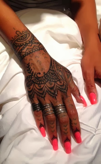 Earlier this month Rihanna shocked her fans by getting a traditional maori tattoo performed with a chisel and mallet. She just got the painful memento covered up.. with a more hideous tattoo.