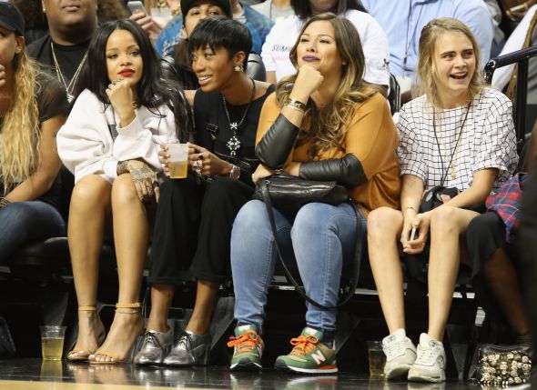 Rihanna was seen watching the game with a blank expression on her face, before digging into a greasy snack from the concession stand.