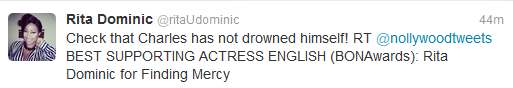 Nollywood producer yesterday released a list of his best five Nollywood actresses. He ranked Rita Dominic no 5 and she has responded to him via twitter what she thinks of his list.