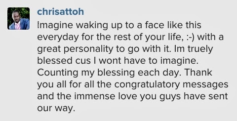 See cute message Chris Attoh sent to fiancée Damilola Adegbite Posted by: b3rrilyn in Celebrity News Mar 5, 2014 Chris Attoh sent this cute message to his heart throb below: Chris Attoh Damilola Adegbite 2014-03-05 b3rrilyn