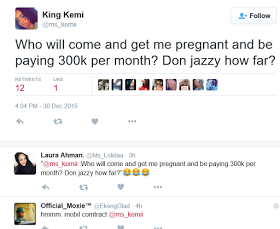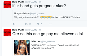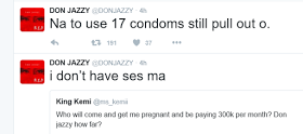 See Don Jazzy’s funny reaction to the Davido baby mama drama (Photos) Posted by: b3rrilyn in Celebrity News Dec 31, 2015 Don Jazzy reacts to the Davido baby mama drama by when a fan asked if he could get her pregnant and pay her 300k per month, lol. Read tweets below: Davido Don Jazzy 2015-12-31 b3rrilyn