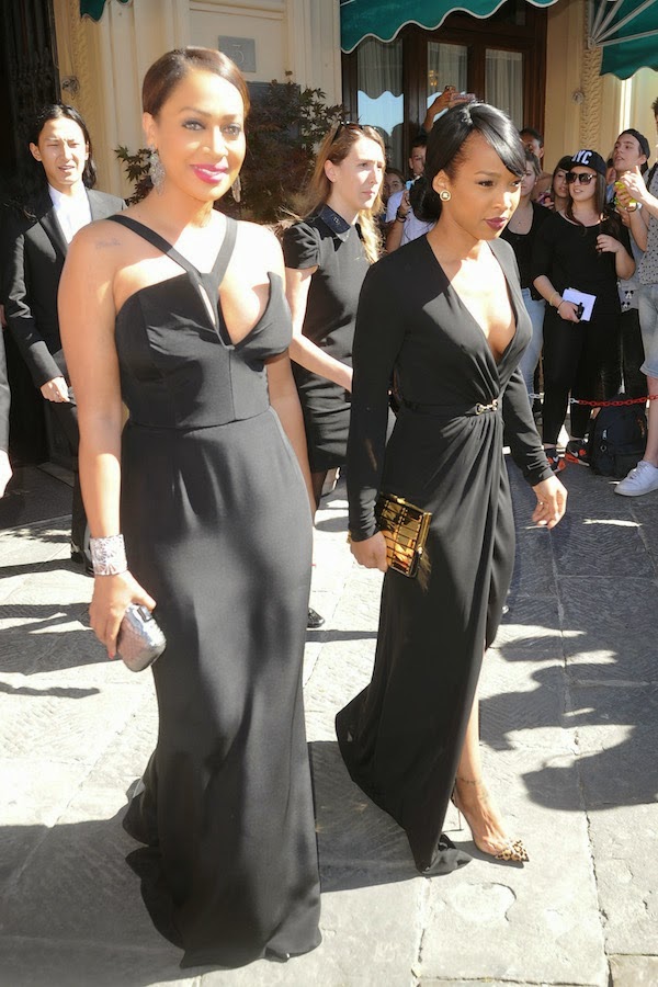Abisola Kola-Daisi rocked this lovely Tom Ford gown with a Hermes to Kim Kardashian West‘s fab Italy wedding. Her besties – LaLa Anthony and Malika who are also Kim Kardashian’s best buddies rocked black.