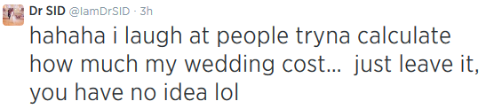 Incase you missed the post read here, Dr Sid‘s wedding was estimated to have cost 25m.