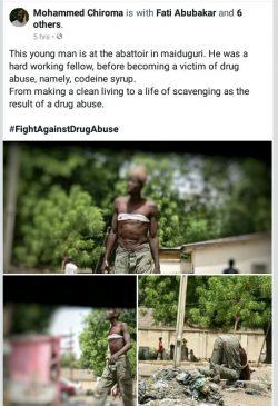 “This young man is at the abattoir in maiduguri. He was a hard working fellow, before becoming a victim of drug abuse, namely, codeine syrup.