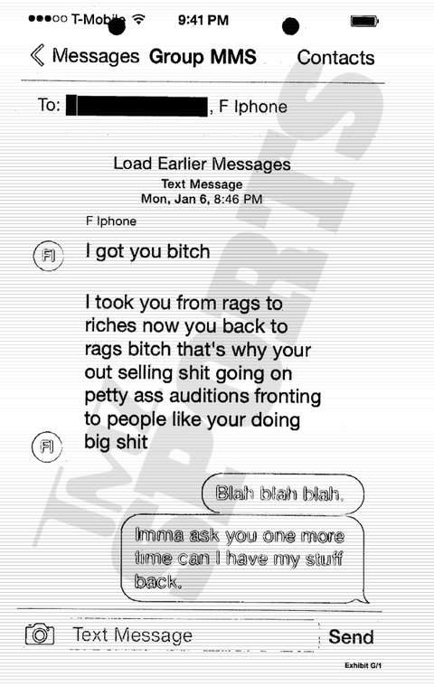 — “I took you from rags to riches now you back to rags bitch. that’s why your out selling shit going on petty ass auditions fronting to people like your doing big sh*t.”