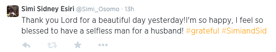 Dr Sid‘s wife Simi Osomo-Esiri is happy about how her big day turned out and she is so in love with her hubby.
