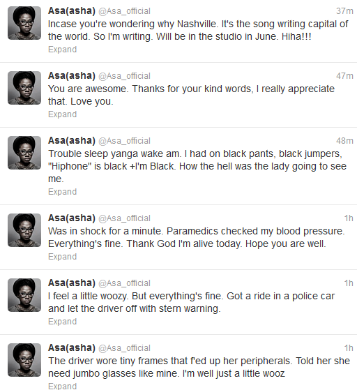 Home » Celebrity News » Singer Asa survives car accident in Nashville, Tennessee