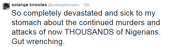 The singer and rapper both took to their twitter handles to tweet about the loss of lives in Nigeria.