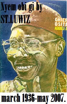 ST.LUWiZ – Nyem Obi Gi (Osadebe Cover) Posted by: stiphbami in Music Nov 20, 2012 In remembrance of one of NiGERIa’s greatest musical icons, the founder of highlife music, CHIEF STEPHEN OSITA OSADEBE, this is a cover of one his early 80′s hit song NYEM OBI GI by ST.LUWiZ. Check it out below and Enjoy!!! DOWNLOAD St Luwiz 2012-11-20 stiphbami