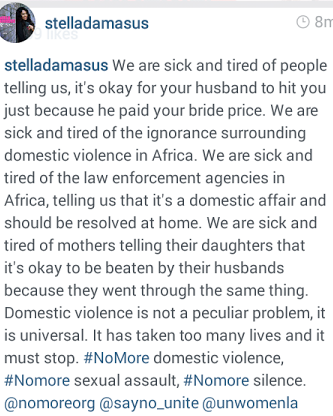 Stella Damasus stands up for women forced into silence Posted by: b3rrilyn in Celebrity News Jan 3, 2015 The actress and activist has taken up a new cause in 2015. To stand up and enlighten those who can’t stand up for themselves. Stella Damasus 2015-01-03 b3rrilyn