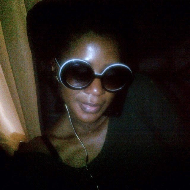 Nigerian actress, Stephanie Linus-Okereke shared a selfie of herself rocking a big sun glasses in the dark without makeup.