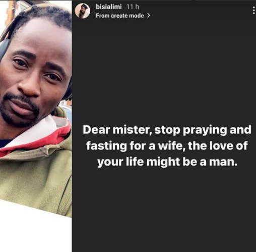 According to him, such men should refrain from doing such to get a wife because the love of their life might just be another man.