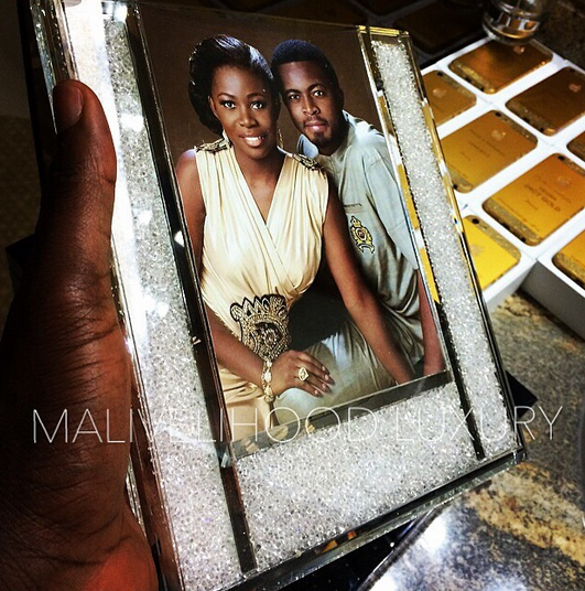 Luxury designer Malivelihood posted samples of some of the gifts guests received at President Jonathan’s daughter’s wedding which took place in Abuja today. One of the gifts was a gold-plated iPhone.