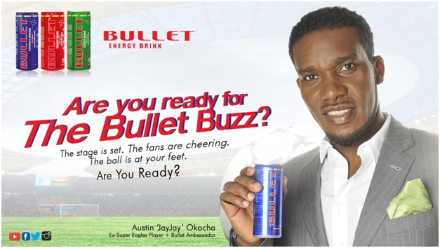 The Nigerian football superstar has been announced as the new brand ambassador for Bullet Energy Drink. Jay Jay Okocha joins actress Chika Ike, who signed on earlier in the year. He signed a N 15 Million per year contract which will run for two years. In 2013, Okocha featured in ...