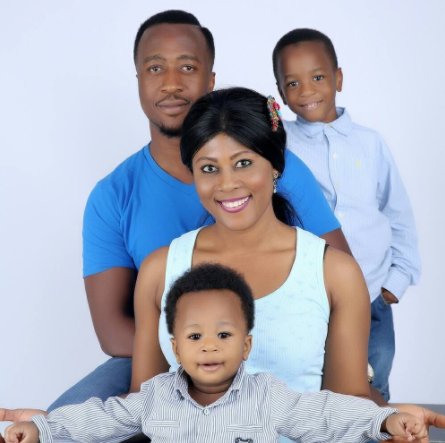 Tunde Akinsanmi was once a member of popular music group – Styl-Plus, who reigned back in the days with their hits; “Iya Basira, Imagine that” amongst others. He later embarked on a solo career. He is pictured here with his wife and children in a new family portrait.