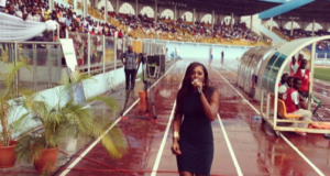 The beautiful singer gave a great performance in the rain with no shoes during the half time of a football match at City Stadium in Warri, Delta State.