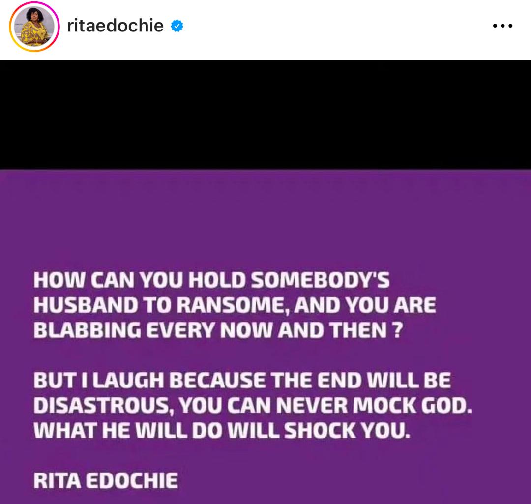Rita shared her post hours after Judy Austin, second wife of Yul Edochie, advised young ladies against living for a man while still in school.