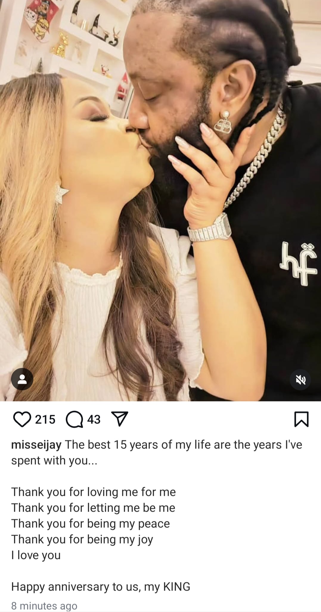 Ijeoma then shared an intimate photo of them kissing to mark their special milestone.