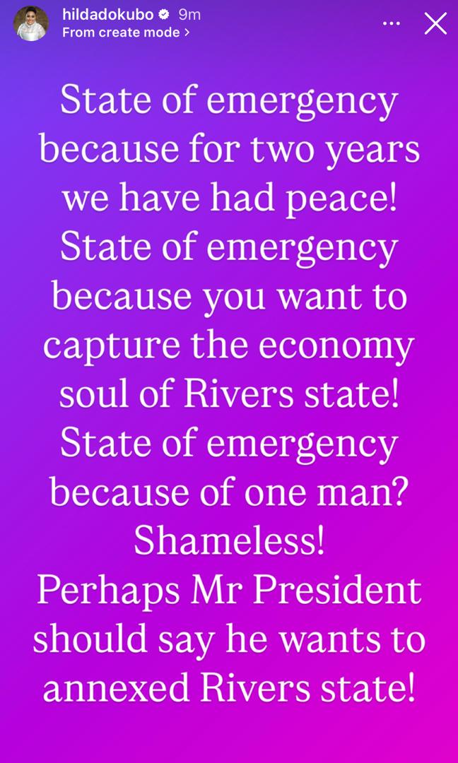 Hilda added that Tinubu only declared State of Emergency because he wants to capture the economy soul of the state.