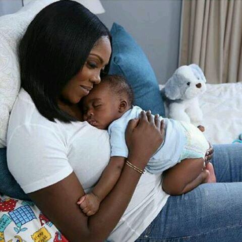 This lovely photo of Tiwa cuddling her son has been released