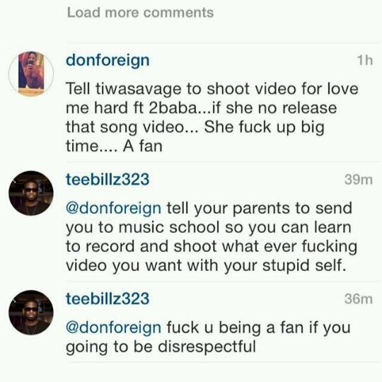 A fan who loves Tiwa Savage collabo with 2baba (Love me hard) demanded for a video for his favourite song.