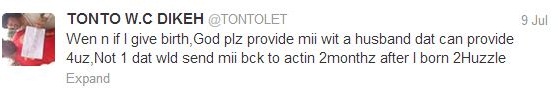 Yesterday, Tonto posted some tweets that was supposedly targeted at Mercy Johnson, read here. Well, she has actually mentioned her name.