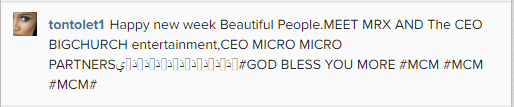 Happy new week Beautiful People. MEET MRX AND The CEO BIGCHURCH entertainment, CEO MICRO MICRO PARTNERS #GOD BLESS YOU MORE #MCM #MCM #MCM#