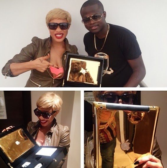 Seems like gold gadgets is the new cool and must have for every Nigerian celeb these days. Tonto Dikeh has decided to show us her expensively customised gadget which she received as a present from Malivelihood.