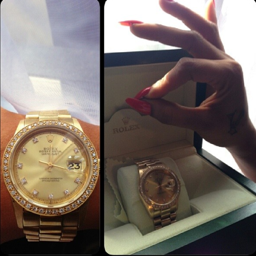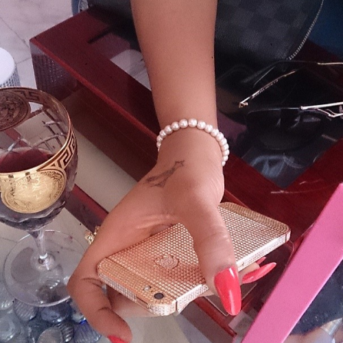 Tonto Dikeh flaunts her gold plated, diamond studded iPhone5s & 18k Gold Rolex (Photos) Posted by: b3rrilyn in Celebrity News Nov 23, 2013 Last month she flaunted her gold plated iphone, now it’s an upgraded iPhone5s, Diamond limited edition.. Also shared a photo of her Rolex. “Got my new 18k yellow Gold Rolex with customised Bezel diamond big “face” iphone Tonto Dikeh 2013-11-23 b3rrilyn