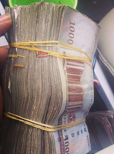 Celebrity stylist, Jeremiah Ogbodo posted this bundle of money on instagram claiming Tonto Dikeh gave it to him just for weekend enjoyment