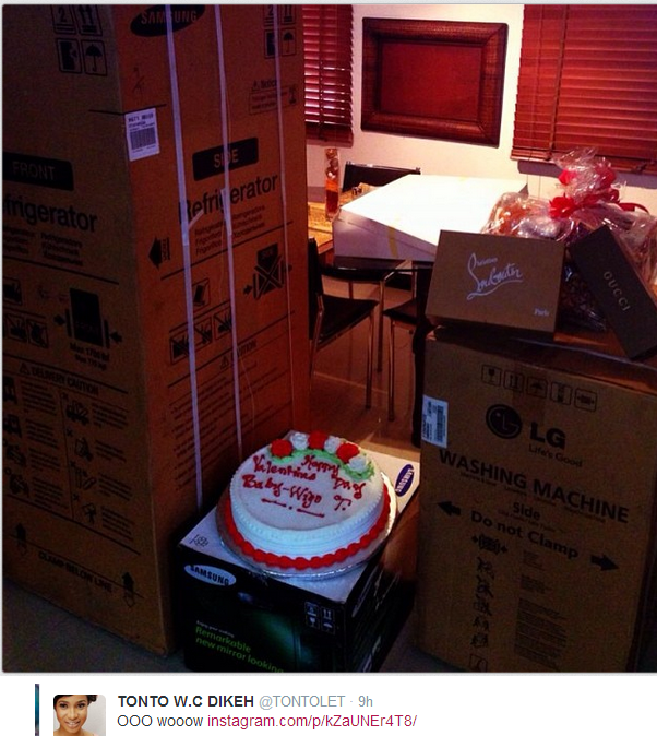 This Valentine day is really smiling on some people. Some haven’t gotten any gift while others are counting their gifts. Nollywood actress Tonto got diamond encrusted watches, books, Fridges, washing machines.