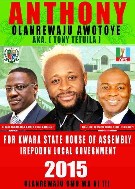 Tony Tetuila joins politics, contests for Kwara House of Assembly Posted by: b3rrilyn in Celebrity News Sep 24, 2014 He was one of the hit makers back in the day. He’s just declared his intention to run for Kwara State House of Assembly, Irepodun Local Government. I guess this is the trend Tony Tetuila 2014-09-24 b3rrilyn
