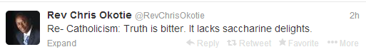 After public outrage that trailed his controversial Sermon“”All Catholics in the world will go to hell because they worship Satan and are led by an Anti-Christ Pope who is a friend to the devil.”... his twitter account posted “Truth is bitter. It lacks Saccharine delights”