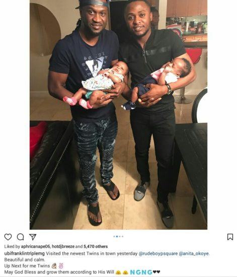 Paul Okoye and Wife, Anita Welcomed twin babies some days ago, celebrities have payed them visits in their Atlanta home to congratulate them. Their newest visitor is triple MG boss, Ubi Franklin. Ubi took to his Instagram to show off his visit and to also wish for twins.
