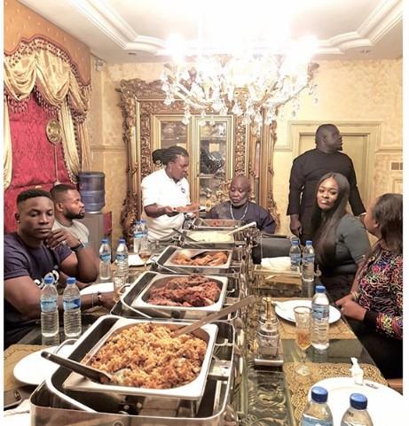 The celebs were hosted to a buffet and they seemed quite excited in the photos.