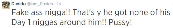 Who pissed Davido off? | See Tweets Posted by: b3rrilyn in Celebrity News Jan 6, 2015 He didn’t mention names but the music star took to his twitter handle just now to slam someone whom he helped.. Davido 2015-01-06 b3rrilyn