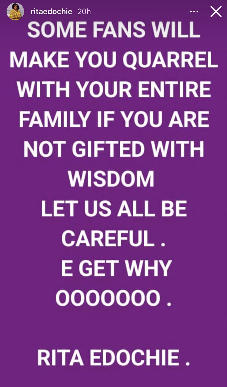 Nollywood actress Rita Edochie has come out to warn her fellow celebrities against being used by their fans.