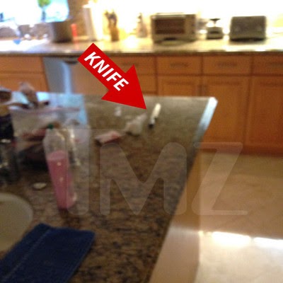 The poop indicated in the photo is dog sh*t. But that’s outside the home. Amber left a knife on the kitchen counter