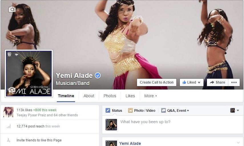 Effyzzie Music diva Yemi Alade has been verified by social networking service Facebook.