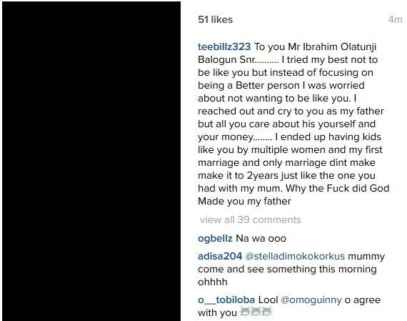 Teebillz took to his Instagram page on Thursday morning to reveal shocking details about his deteriorating relationship with his wife, his in-laws, his family, friends and other close associates in series of lengthy rants.