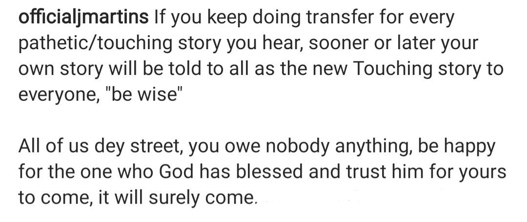 According to him, these selfless people should beware of what could happen to them if they keep granting people’s requests, else they’ll be the one with a touching story soon.