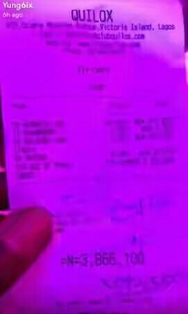 Yung6ix Spends N3.9m on Drinks At Club Quilox, Shows Off Receipt